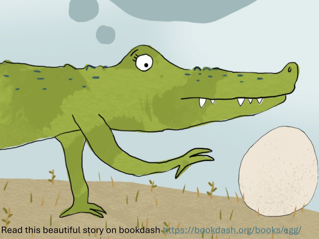 “What now?’, they said to each other. They decided to swim to the other side. ‘But first, let us look under the water to make sure nothing is following us,’ said the first boy.